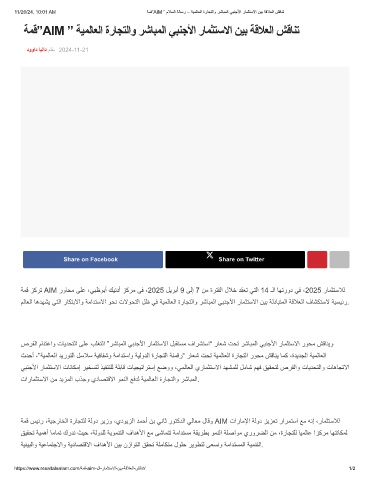 11/26/24, 10:01 AM ﺔﻣﻗ”AIM ” مﻼﺳﻟا ﺔﻟﺎﺳر – ﺔﯾﻣﻟﺎﻌﻟا ةرﺎﺟﺗﻟاو رﺷﺎﺑﻣﻟا ﻲﺑﻧﺟﻷا رﺎﻣﺛﺗﺳﻻا نﯾﺑ ﺔﻗﻼﻌﻟا شﻗﺎﻧﺗ