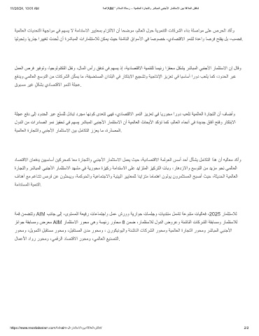 زﺋاوﺟ ﺔﻘﺑﺎﺳﻣو ضرﻌﻣ AIM رﺎﻣﺛﺗﺳﻻا روﺣﻣ ﻲھو ﺔﺳﯾﺋر روﺎﺣﻣ 8 نﻣﺿ ،رﺎﻣﺛﺗﺳﻼﻟ لودﻟا ضورﻋو ﺔﺋﺷﺎﻧﻟا تﺎﻛرﺷﻟا ﺔﻘﺑﺎﺳﻣو رﺎﻣﺛﺗﺳﻼﻟ