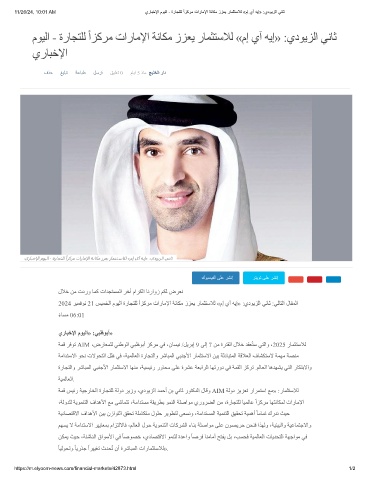 11/26/24, 10:01 AM يرﺎﺑﺧﻹا موﯾﻟا - ةرﺎﺟﺗﻠﻟ ًازﻛرﻣ تارﺎﻣﻹا ﺔﻧﺎﻛﻣ ززﻌﯾ رﺎﻣﺛﺗﺳﻼﻟ «مإ يآ ﮫﯾإ» :يدوﯾزﻟا ﻲﻧﺎﺛ