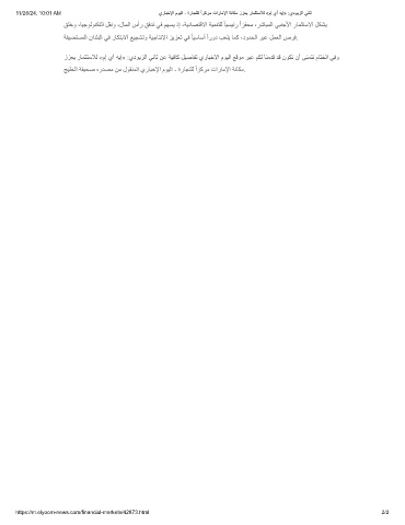 11/26/24, 10:01 AM يرﺎﺑﺧﻹا موﯾﻟا - ةرﺎﺟﺗﻠﻟ ًازﻛرﻣ تارﺎﻣﻹا ﺔﻧﺎﻛﻣ ززﻌﯾ رﺎﻣﺛﺗﺳﻼﻟ «مإ يآ ﮫﯾإ» :يدوﯾزﻟا ﻲﻧﺎﺛ
