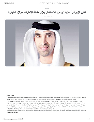 11/26/24, 10:03 AM ةرﺎﺟﺗﻠﻟ ًازﻛرﻣ تارﺎﻣﻹا ﺔﻧﺎﻛﻣ ززﻌﯾ رﺎﻣﺛﺗﺳﻼﻟ «مإ يآ ﮫﯾإ» :يدوﯾزﻟا ﻲﻧﺎﺛ