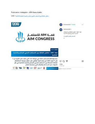 Publication: Instagram – ARN News Arabic Link: " ةمقAIM.ةيلماعلا ةراجتلاو رشابلما يبنجلأا رامثتسلاا نيب ةقلاعلا شقانت "