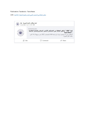 Publication: Facebook – Fana News Link: ةمق"AIM " ةيلماعلا ةراجتلاو رشابلما يبنجلأا رامثتسلاا نيب ةقلاعلا شقانت