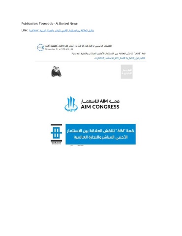 Publication: Facebook – Al Barjeel News Link: ةمق"AIM " ةيلماعلا ةراجتلاو رشابلما يبنجلأا رامثتسلاا نيب ةقلاعلا شقانت