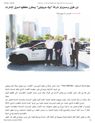 ﻲ ﻠ ﻣ ﺑ“ ﺔ ﺷ ﻲﻟو ﻣ ﻊﻣ ،دﺎ ﻗﻻا زو ﻟا ق ﺑ ﷲ ﻋ ﻲﻟﺎﻌﻣ – Peec Mobility”، ﺔ ﻠ ﻘ ﻟا ﺔ ﻟا ﺧ