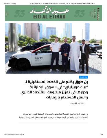 11/25/24, 10:28 AM تارﺎﻣﻹﺎﺑ مادﺗﺳﻣﻟا لﻘﻧﻟاو يرﺋادﻟا دﺎﺻﺗﻗﻻا ﺔﻣوظﻧﻣ زﯾزﻌﺗ ﻲﻓ ﺎھرودو ﺔﯾﺗارﺎﻣﻹا قوﺳﻟا ﻲﻓ "ﻲﺗﯾﻠﯾﺑوﻣ كﯾﺑ" ـﻟ ﺔﯾﻠﺑﻘﺗﺳﻣﻟا ططﺧﻟا ﻰﻠﻋ ﻊﻠ ّ طﯾ قوط نﺑ