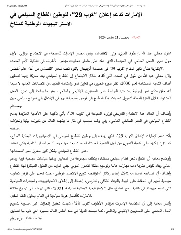 11/25/24, 11:06 AM نطوﻟا ةدﯾرﺟ › خﺎﻧﻣﻠﻟ ﺔﯾﻧطوﻟا تﺎﯾﺟﯾﺗارﺗﺳﻻا ﻲﻓ ﻲﺣﺎﯾﺳﻟا عﺎطﻘﻟا نﯾطوﺗﻟ ،″29 بوﻛ“ نﻼﻋإ مﻋدﺗ تارﺎﻣﻹا