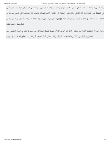 ﻲﻓ ﺔﯾﺣﺎﯾﺳ ﺔﯾوھ لﺿﻓﺄﻛ تارﺎﻣﻹا ﺔﻧﺎﻛﻣ ﺦﯾﺳرﺗ ﻰﻟإ فدﮭﺗ ﻲﺗﻟا ،"2031 ﺔﺣﺎﯾﺳﻠﻟ ﺔﯾﻧطوﻟا ﺔﯾﺟﯾﺗارﺗﺳﻻا" لﺛﻣ ،خﺎﻧﻣﻟا ﻊﻣ فﯾﻛﺗﻟا