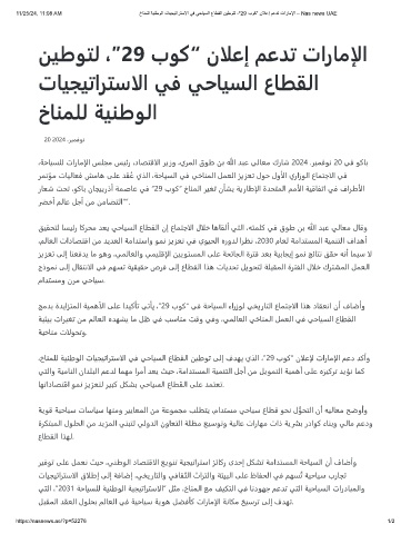 11/25/24, 11:08 AM خﺎﻧﻣﻠﻟ ﺔﯾﻧطوﻟا تﺎﯾﺟﯾﺗارﺗﺳﻻا ﻲﻓ ﻲﺣﺎﯾﺳﻟا عﺎطﻘﻟا نﯾطوﺗﻟ ،″29 بوﻛ“ نﻼﻋإ مﻋدﺗ تارﺎﻣﻹا – Nas news UAE