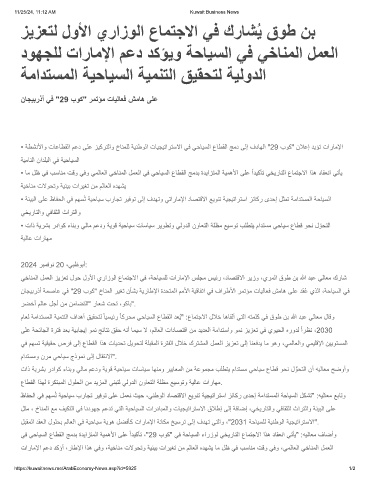 • ﺔطﺷﻧﻷاو تﺎﻋﺎطﻘﻟا مﻋد ﻰﻠﻋ زﯾﻛرﺗﻟاو خﺎﻧﻣﻠﻟ ﺔﯾﻧطوﻟا تﺎﯾﺟﯾﺗارﺗﺳﻻا ﻲﻓ ﻲﺣﺎﯾﺳﻟا عﺎطﻘﻟا ﺞﻣد ﻰﻟإ فدﺎﮭﻟا "29 بوﻛ" نﻼﻋإ دﯾؤﺗ تارﺎﻣﻹا