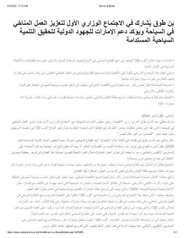 ﺔطﺷﻧﻷاو تﺎﻋﺎطﻘﻟا مﻋد ﻰﻠﻋ زﯾﻛرﺗﻟاو خﺎﻧﻣﻠﻟ ﺔﯾﻧطوﻟا تﺎﯾﺟﯾﺗارﺗﺳﻻا ﻲﻓ ﻲﺣﺎﯾﺳﻟا عﺎطﻘﻟا ﺞﻣد ﻰﻟإ فدﺎﮭﻟا "29 بوﻛ" نﻼﻋإ دﯾؤﺗ تارﺎﻣﻹا •