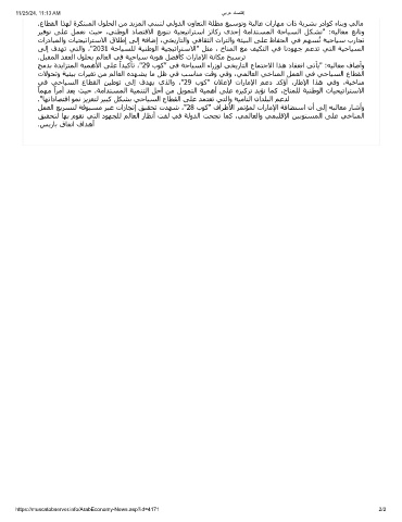 ﺞﻣﺪﺑ ةﺪﻳاﺰﺘﻤﻟا ﺔﯿﻤھﻷا ﻰﻠﻋ اﺪﯿﻛﺄﺗ ،"29 بﻮﻛ" ﻲﻓ ﺔﺣﺎﯿﺴﻟا ءارزﻮﻟ ﻲﺨﻳرﺎﺘﻟا عﺎﻤﺘﺟﻻا اﺬھ دﺎﻘﻌﻧا ﻲﺗﺄﻳ" :ﻪﯿﻟﺎﻌﻣ فﺎﺿأو