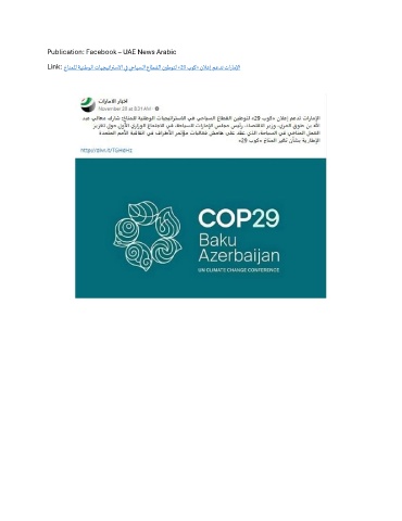 Publication: Facebook – UAE News Arabic Link: خانملل ةينطولا تايجيتارتسلاا يف يحايسلا عاطقلا نيطوتل »29 بوك« نلاعإ معدت تاراملإا