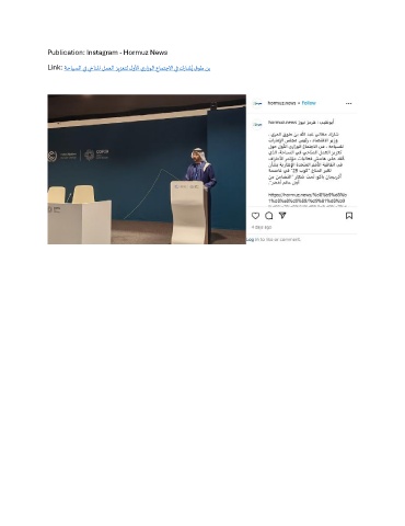 Publication: Instagram - Hormuz News ُ Link: ةحايسلا يف يخانلما لمعلا زيزعتل لولأا يرازولا عامتجلاا يف كراشي قوط نب