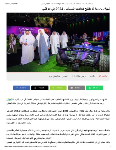 ﻲﺑظوﺑأ كﯾﻧدأ زﻛرﻣ ﻲﻓ ،2024 سﻧﺎﺑﺳﻛإ ىدﺗﻧﻣ تﺎﯾﻟﺎﻌﻓ سﻣأ ،شﯾﺎﻌﺗﻟاو ﺢﻣﺎﺳﺗﻟا رﯾزو ،نﺎﯾﮭﻧ لآ كرﺎﺑﻣ نﺑ نﺎﯾﮭﻧ ﺦﯾﺷﻟا ﻲﻟﺎﻌﻣ ﺢﺗﺗﻓا.