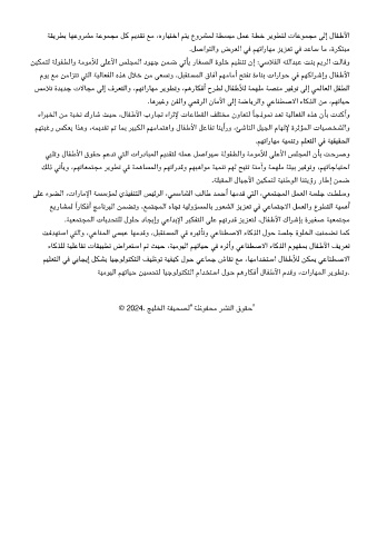 مﻮﻳ ﻊﻣ ﻦﻣاﺰﺘﺗ ﺘﻟا ﺔﻴﻟﺎﻌﻔﻟا هﺬﻫ لﻼﺧ ﻦﻣ ﻌﺴﻧو ،ﻞﺒﻘﺘﺴﻤﻟا قﺎﻓآ ﻢﻬﻣﺎﻣأ ﺢﺘﻔﺗ ةءﺎﻨﺑ تاراﻮﺣ ﻓ ﻢﻬﻛاﺮﺷإو لﺎﻔﻃﻷا