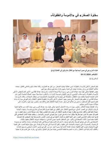 تعمج ،لفطلل يملاعلا مويلاب ًءافتحا كلذو ،»لضفأ دغ لجأ نم :راغصلا ةولخ« ةيلاعف ،سمأ ،ةلوفطلاو ةموملأل ىلعلأا سلجملا مظن