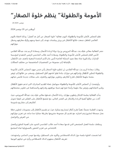 11/25/24, 11:36 AM “رﺎﻐﺻﻟا ةوﻠﺧ مظﻧﯾ ”ﺔﻟوﻔطﻟاو ﺔﻣوﻣﻷا – Nas news UAE