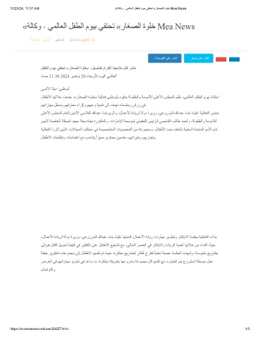 11/25/24, 11:37 AM «ﺔﻟﺎﻛو - ﻲﻣﻟﺎﻌﻟا لﻔطﻟا موﯾﺑ ﻲﻔﺗﺣﺗ «رﺎﻐﺻﻟا ةوﻠﺧ Mea News