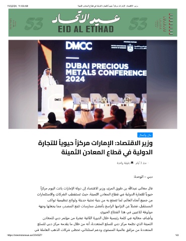 11/22/24, 11:49 AM ﺔﻧﯾﻣﺛﻟا ندﺎﻌﻣﻟا عﺎطﻗ ﻲﻓ ﺔﯾﻟودﻟا ةرﺎﺟﺗﻠﻟ ً ﺎﯾوﯾﺣ ًازﻛرﻣ تارﺎﻣﻹا :دﺎﺻﺗﻗﻻا رﯾزو
