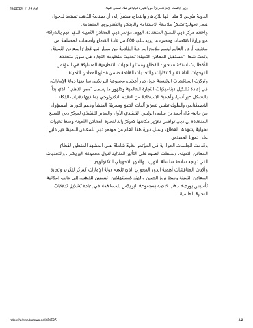 11/22/24, 11:49 AM ﺔﻧﯾﻣﺛﻟا ندﺎﻌﻣﻟا عﺎطﻗ ﻲﻓ ﺔﯾﻟودﻟا ةرﺎﺟﺗﻠﻟ ً ﺎﯾوﯾﺣ ًازﻛرﻣ تارﺎﻣﻹا :دﺎﺻﺗﻗﻻا رﯾزو