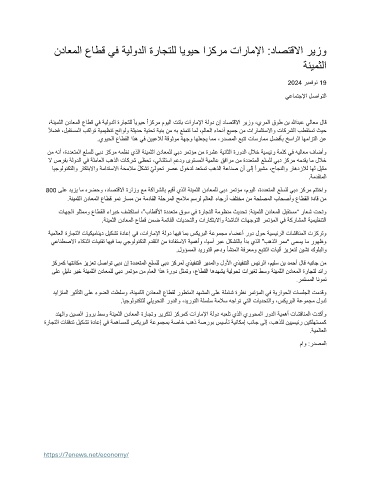 ،ةن يمثلا نداعملا عاطق يف ةيلودلا ةراجتلل ًايويح ًازكرم مويلا تتاب تاراملإا ةلود نإ داصتقلاا ريزو ،يرملا قوط نب اللهدبع يلاعم لاق