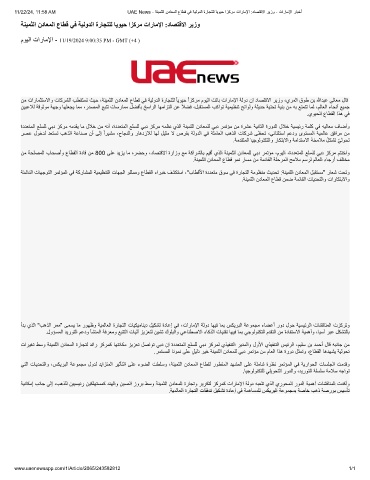 11/22/24, 11:58 AM UAE News - ﺔﻧﯾﻣﺛﻟا ندﺎﻌﻣﻟا عﺎطﻗ ﻲﻓ ﺔﯾﻟودﻟا ةرﺎﺟﺗﻠﻟ ﺎﯾوﯾﺣ ازﻛرﻣ تارﺎﻣﻹا :دﺎﺻﺗﻗﻻا رﯾزو - تارﺎﻣﻹا رﺎﺑﺧأ