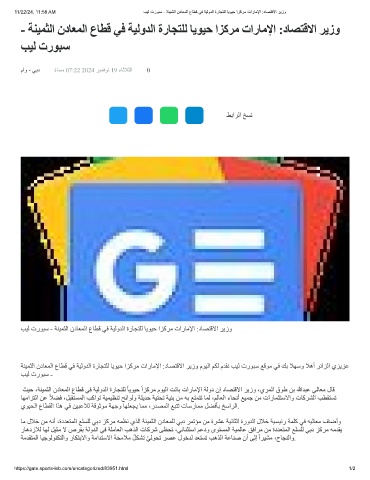 ﺔﻨﯿﻤﺜﻟا ندﺎﻌﻤﻟا عﺎﻄﻗ ﻲﻓ ﺔﯿﻟوﺪﻟا ةرﺎﺠﺘﻠﻟ ﺎﯾﻮﯿﺣ اﺰﻛﺮﻣ تارﺎﻣﻹا :دﺎﺼﺘﻗﻻا ﺮﯾزو مﻮﯿﻟا ﻢﻜﻟ مﺪﻘﻧ ﺐﯿﻟ ترﻮﺒﺳ ﻊﻗﻮﻣ ﻲﻓ ﻚﺑ ﻼﮭﺳو ﻼھأ ﺮﺋاﺰﻟا يﺰﯾﺰﻋ