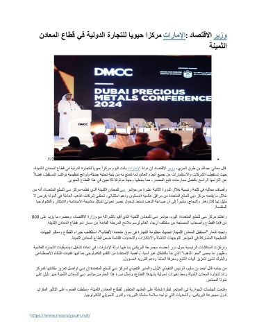 نم هنأ ،ةددعتملا علسلل يبد زكرم همظن يذلا ةنيمثلا نداعملل يبد رمتؤم نم ةرشع ةيناثلا ةرودلا للاخ ةيسيئر ةملك يف هيلاعم فاضأو