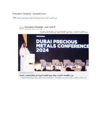 Publication: Facebook – Emarat Al Youm Link: ةنيمثلا نداعلما عاطق يف ةيلودلا ةراجتلل ايويح ازكرم تاراملإا :داصتقلاا ريزو