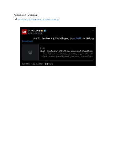 Publication: X – Emirates 24 Link: ةنيمثلا نداعلما يف ةيلودلا ةراجتلل يويح زكرم تاراملإا# :داصتقلاا ريزو