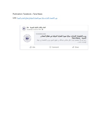 Publication: Facebook – Fana News Link: ةنيمثلا نداعلما عاطق يف ةيلودلا ةراجتلل ايويح ازكرم تاراملإا :داصتقلاا ريزو