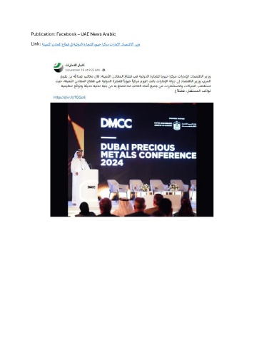 Publication: Facebook – UAE News Arabic Link: ةنيمثلا نداعلما عاطق يف ةيلودلا ةراجتلل ايويح ازكرم تاراملإا :داصتقلاا ريزو