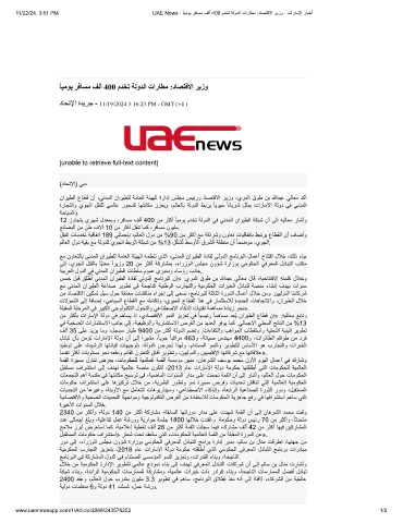 11/22/24, 3:51 PM UAE News - ً ﺎﯾﻣوﯾ رﻓﺎﺳﻣ فﻟأ 400 مدﺧﺗ ﺔﻟودﻟا تارﺎطﻣ :دﺎﺻﺗﻗﻻا رﯾزو - تارﺎﻣﻹا رﺎﺑﺧأ