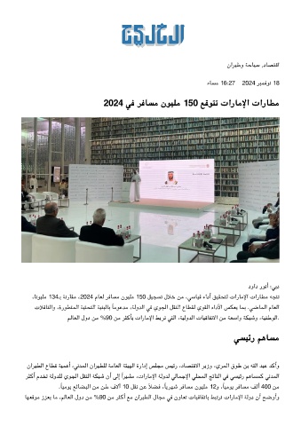 ،ﺎﻧﻮﻴﻠﻣ 134ـﺑ ﺔﻧرﺎﻘﻣ ،2024 مﺎﻌﻟ ﺮﻓﺎﺴﻣ نﻮﻴﻠﻣ 150 ﻞﻴﺠﺴﺗ لﻼﺧ ﻦﻣ ،ﺳﺎﻴﻗ ءادأ ﻖﻴﻘﺤﺘﻟ تارﺎﻣﻹا تارﺎﻄﻣ ﻪﺠﺘﺗ
