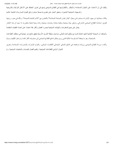 ﺎﮭﺘﯾؤر ءﻮﺿ ﻲﻓ ﻚﻟذو ،"ﺔﺣﺎﯿﺴﻠﻟ ةﺪﺤﺘﻤﻟا ﻢﻣﻷا" ﻊﻣ نوﺎﻌﺘﻟﺎﺑ "ﺔﻣاﺪﺘﺴﻤﻟا ﺔﺣﺎﯿﺴﻟا سﺎﯿﻗ رﺎطإ" لﺎﺠﻣ ﻲﻓ ةﺮﻤﺘﺴﻣ تارﺎﻣﻹا دﻮﮭﺟ نإ ،ﺎﮭﺗدﺎﻌﺳ ﺖﻟﺎﻗو