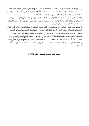 ﺔﻴﺣﺎﻴﺳ ﺔﺌﻴﺑ ﺮﻴﻓﻮﺗو ،ﺗارﺎﻣﻹا ﺣﺎﻴﺴﻟا عﺎﻄﻘﻟا ﺔﻣاﺪﺘﺳا ﺰﻳﺰﻌﺘﻟ ﺎﻬﺘﻳؤر ءﻮﺿ ﻓ ﻚﻟذو ،«ﺔﺣﺎﻴﺴﻠﻟ ةﺪﺤﺘﻤﻟا ﻢﻣﻷا» ﻊﻣ