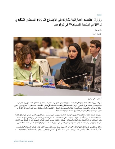 ،ايبمولوك ةيروهمجب دقع يذلا ”ةحايسلل ةدحتملا مملأا“ ـل يذيفنتلا سلجملل 122 ـلا عامتجلاا يف ةيتاراملاا داصتقلاا ةرازو تكراش
