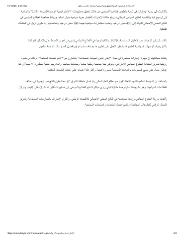 ﺔﯿﻣاﺮﻟاو ”2031 ﺔﺣﺎﯿﺴﻠﻟ ﺔﯿﻨطﻮﻟا ﺔﯿﺠﯿﺗاﺮﺘﺳﻻا“ تﺎﻓﺪﮭﺘﺴﻣ ﻖﯿﻘﺤﺗ لﻼﺧ ﻦﻣ ﻲﺣﺎﯿﺴﻟا ﺎﮭﻋﺎﻄﻗ ﺮﯾﻮﻄﺗو ﺔﯿﻤﻨﺗ ﻲﻓ تارﺎﻣﻹا ﺔﯾؤر ﻰﻟإ ترﺎﺷأو