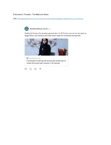 Publication: Threads – The National News Link: The National News: First Emirati to hold top UN tourism job reveals plan to unlock Africa and Latin America