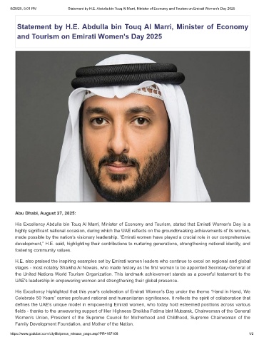 8/28/25, 5:01 PM           Statement by H.E. Abdulla bin Touq Al Marri, Minister of Economy and Tourism on Emirati Women's Day 2025