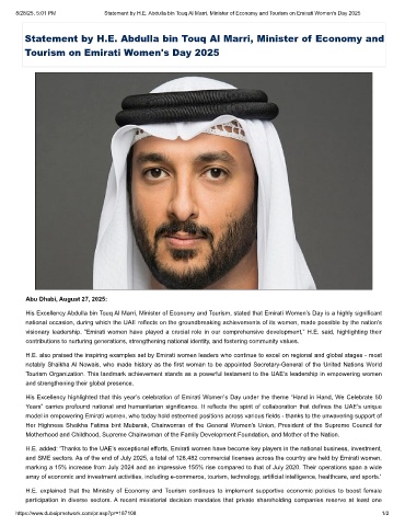 8/28/25, 5:01 PM Statement by H.E. Abdulla bin Touq Al Marri, Minister of Economy and Tourism on Emirati Women's Day 2025