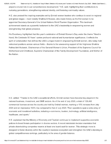 8/28/25, 5:02 PM Statement by H.E. Abdulla bin Touq Al Marri, Minister of Economy and Tourism on Emirati Women's Day 2025 - Middle East News 2…