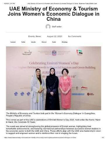 8/26/25, 2:41 PM UAE Ministry of Economy & Tourism Joins Women’s Economic Dialogue in China - Business Today Middle East