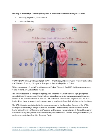 GUANGZHOU, China, 21st August 2025 (WAM) -- The Ministry of Economy and Tourism took part in