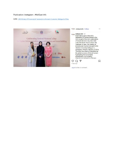 Publication: Instagram – Mid East Info Link: UAE Ministry Of Economy & Tourism Joins Women’s Economic Dialogue In China