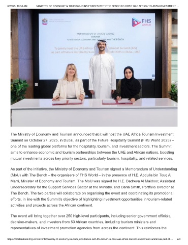 8/26/25, 10:58 AM MINISTRY OF ECONOMY & TOURISM JOINS FORCES WITH THE BENCH TO HOST ‘UAE AFRICA TOURISM INVESTMENT …