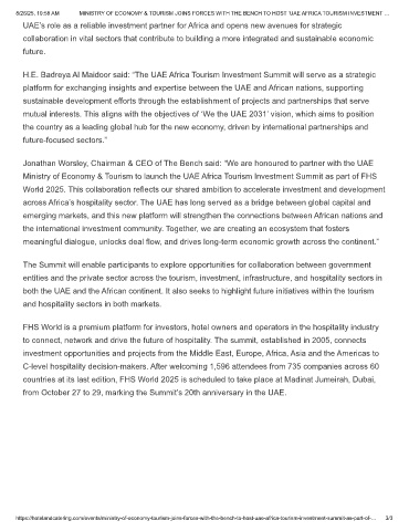 8/26/25, 10:58 AM MINISTRY OF ECONOMY & TOURISM JOINS FORCES WITH THE BENCH TO HOST ‘UAE AFRICA TOURISM INVESTMENT …