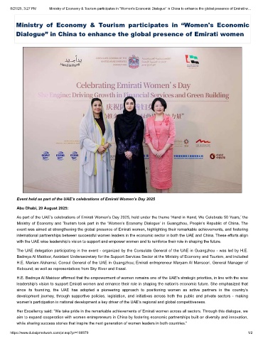 8/21/25, 3:27 PM Ministry of Economy & Tourism participates in “Women's Economic Dialogue” in China to enhance the global presence of Emirati w…