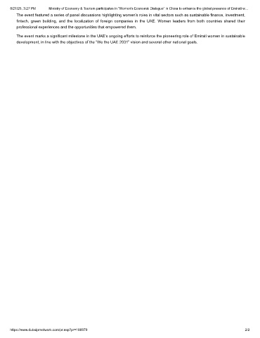 8/21/25, 3:27 PM Ministry of Economy & Tourism participates in “Women's Economic Dialogue” in China to enhance the global presence of Emirati w…
